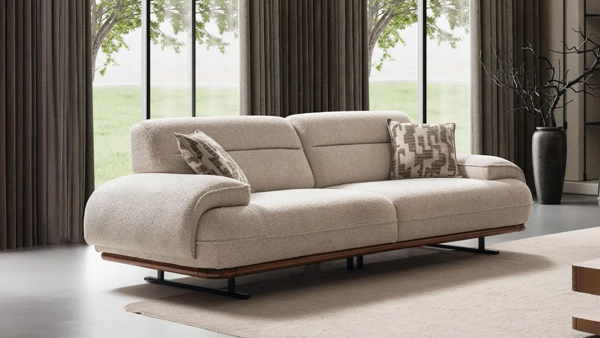 - Spoj neutralne tkanine i dekorativne drvene baze donosi toplinu i sofisticiran izgled svakom dnevnom boravku